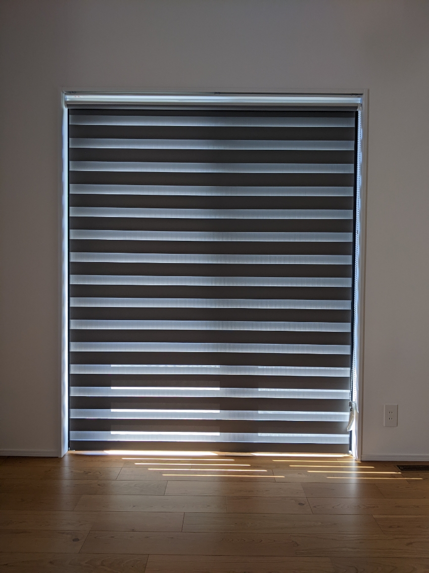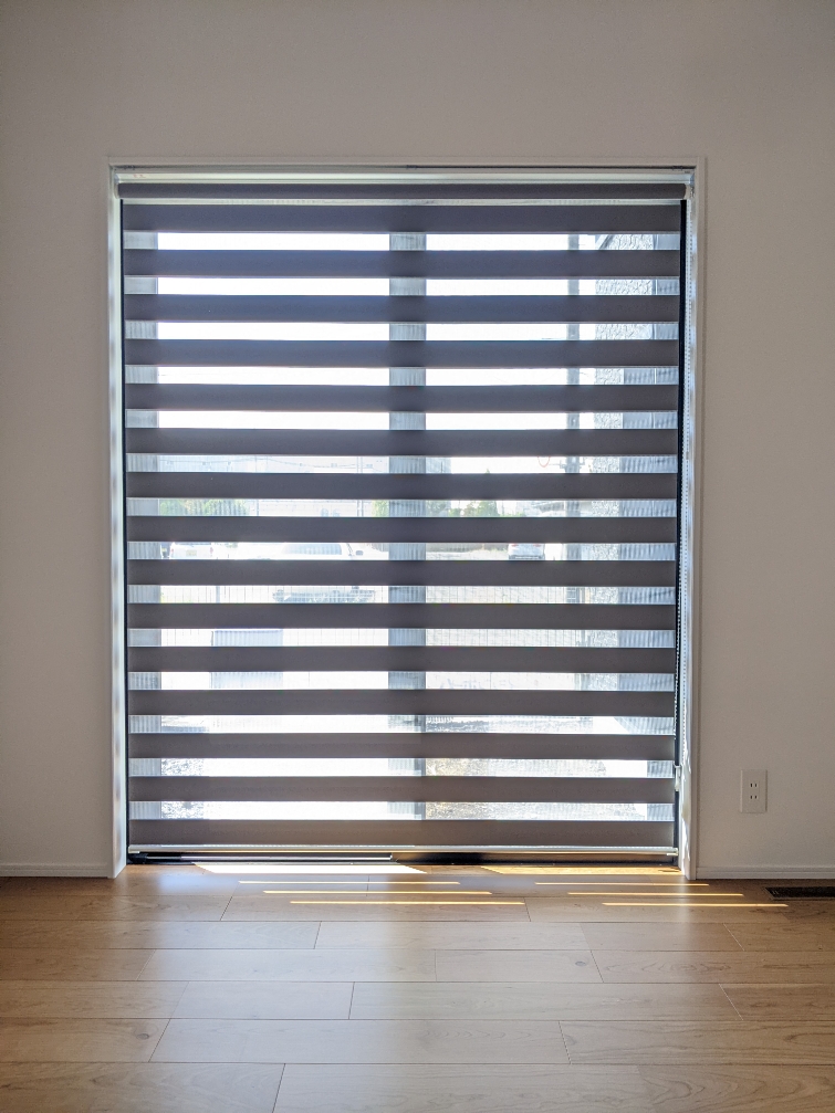 調光ロールスクリーンを施工しました。ロールスクリーンのようなすっきりとした見た目で、調光が自在にできます。