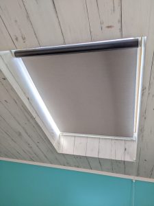 天窓に傾斜のロールスクリーンを取り付けました。コードで開閉もスムーズです。